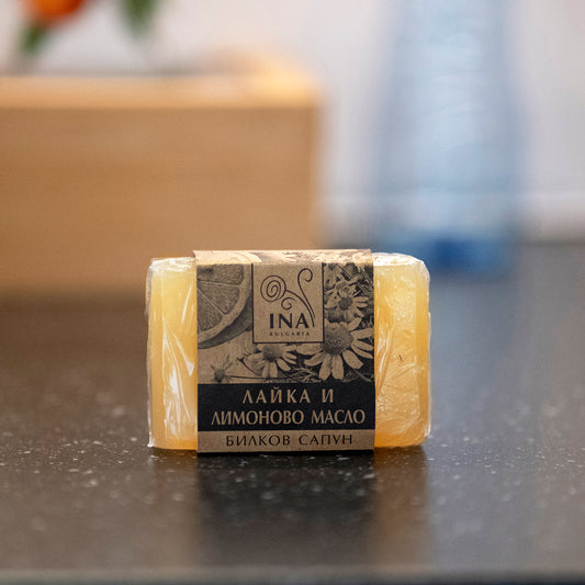 Jabón Herbal Natural con Manzanilla y Aceite de Limón - efecto calmativo