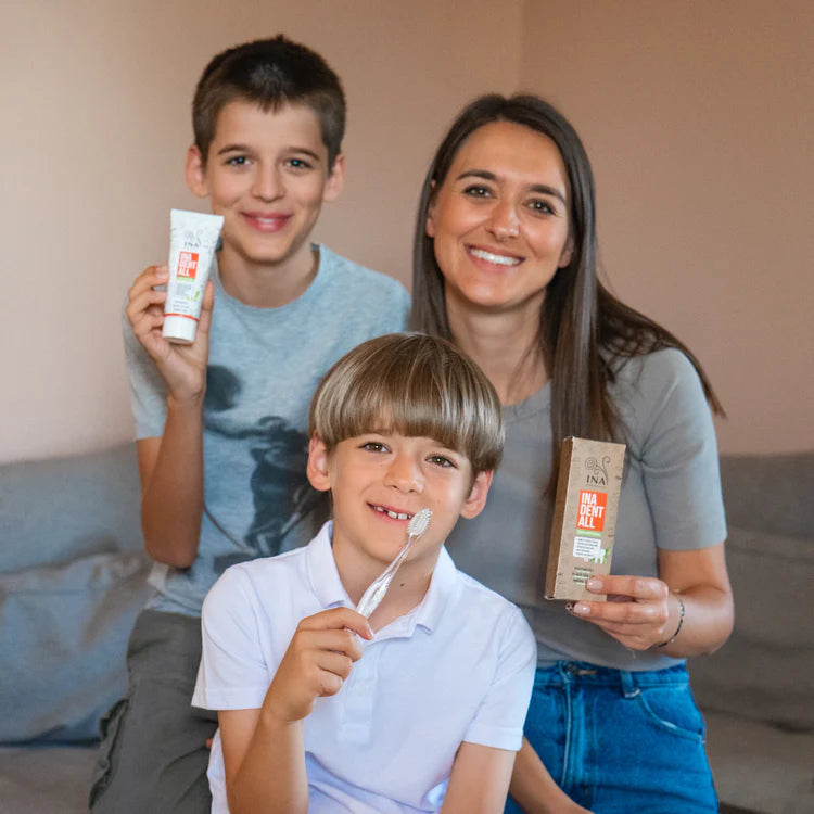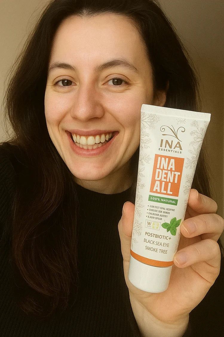 "¡Estoy más que impresionada con este paquete! He usado muchas pastas dentales naturales antes, pero ninguna me ha parecido tan efectiva como InaEssentials DentAll. Mis dientes se sienten tan limpios, y mi aliento se mantiene fresco.