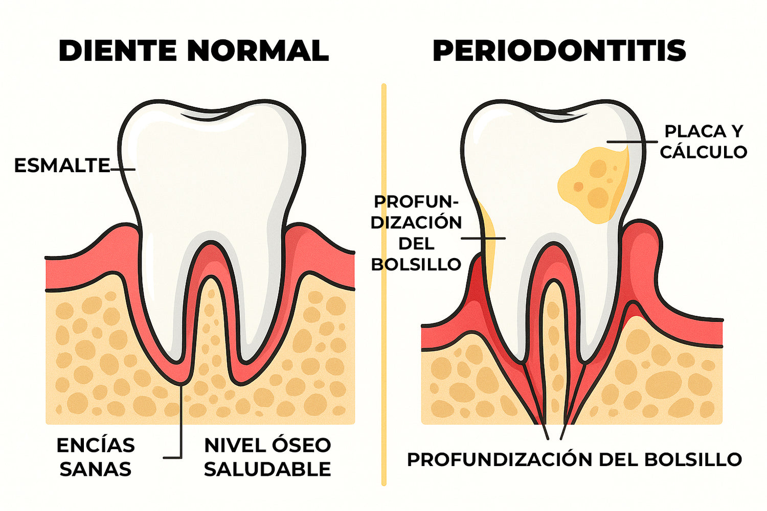 🔴Circulación sanguínea deteriorada – Las encías están literalmente “muertos de hambre”, lo que conduce al debilitamiento, la inflamación y, finalmente, la enfermedad de las encías.