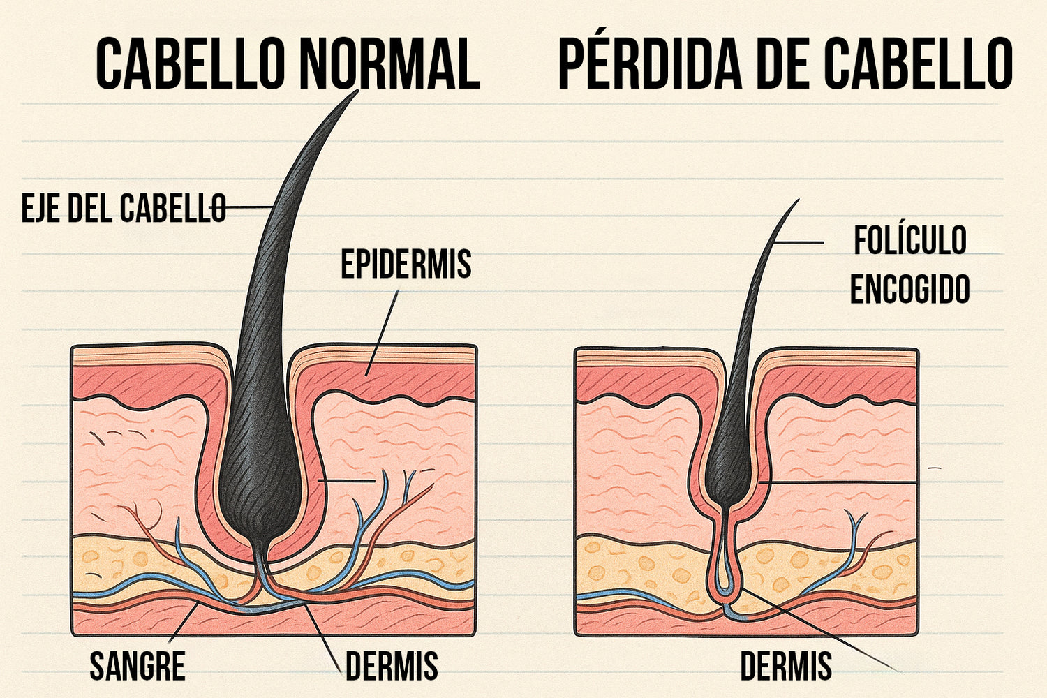 🔴Circulación sanguínea deteriorada - El folículo está literalmente “muriendo de hambre”, lo que conduce al debilitamiento y, finalmente, a la caída del cabello.