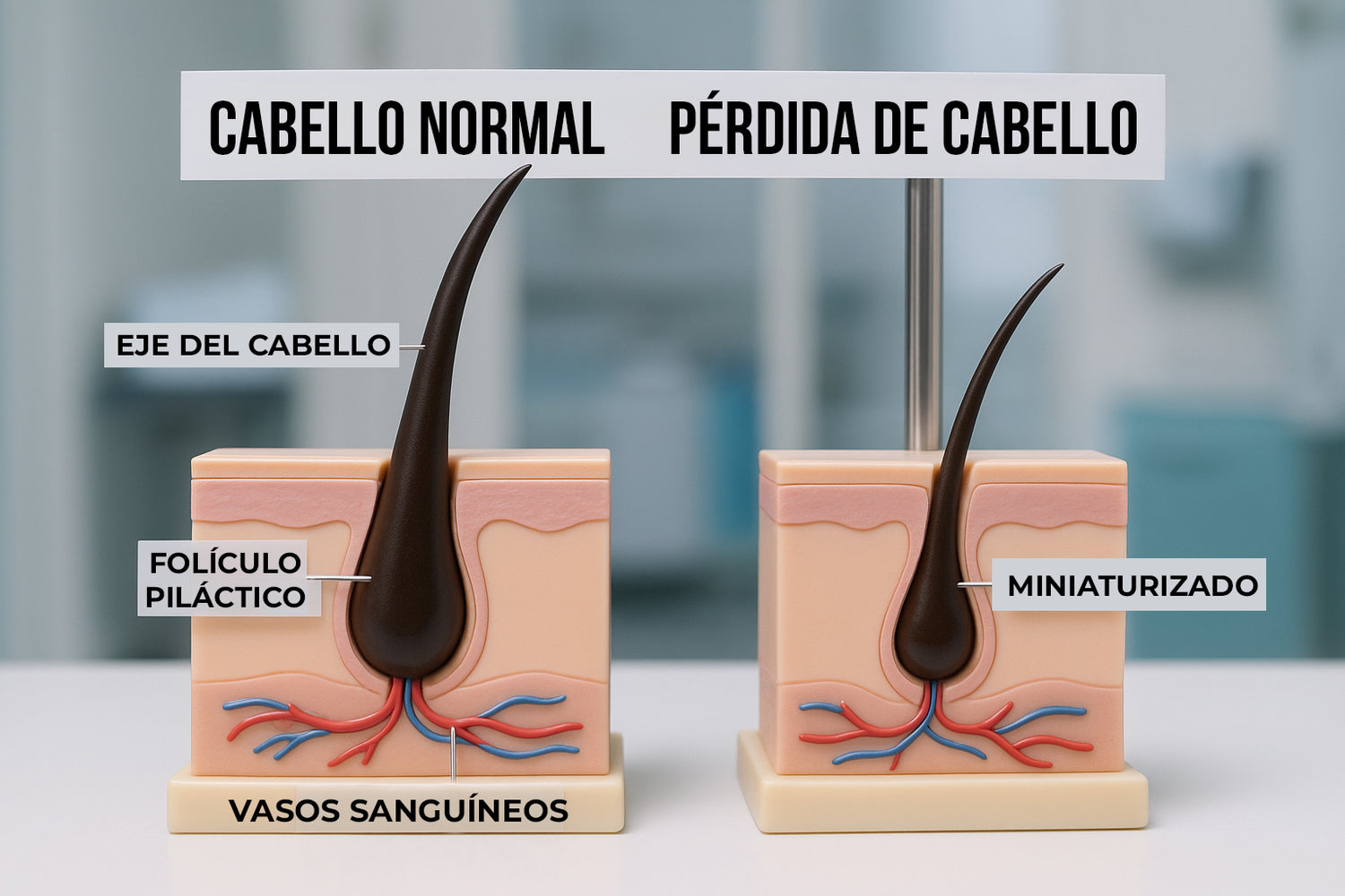 Una vez interrumpido, el ciclo se hace cada vez más corto, provocando que cada vez más cabellos entren en la fase de caída al mismo tiempo.