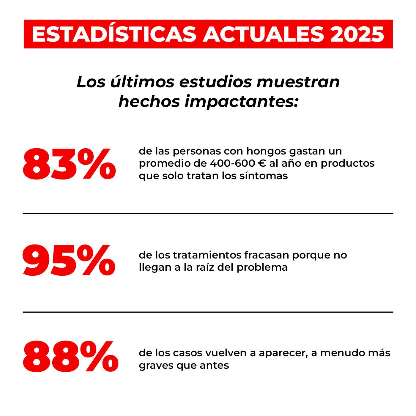 El 83 % de las personas con hongos gasta entre 200–300 EUR al año en productos que solo tratan los síntomas.