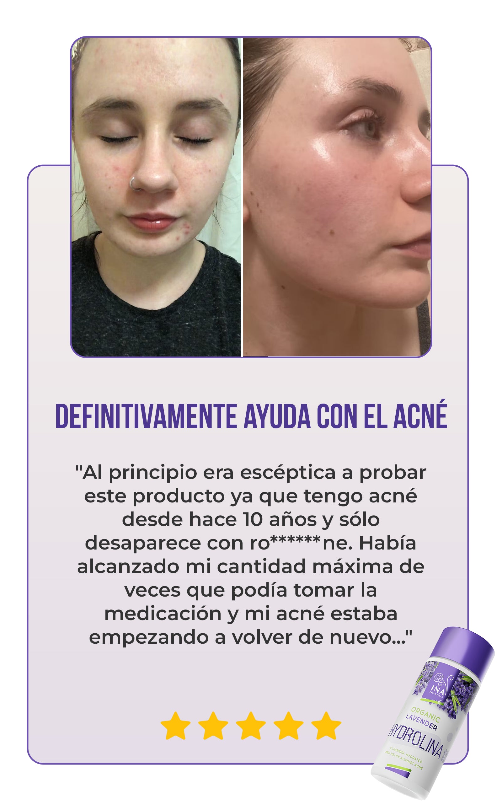 La Hydrolina de Lavanda (150ml) no es solo una botella bonita; está dermatológicamente respaldada. Con una tasa de éxito superior al 90% en las pruebas clínicas, demuestra su poder para reducir el acné, los puntos negros y mejorar la salud de la piel. Haga clic para ver los detalles del certificado.